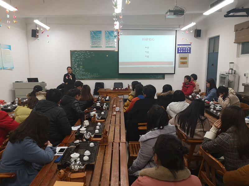 热烈的掌声之中,赵院长用满怀激情的话语向同学们隆重的介绍了两位博士卓越的科研成就,不由使得同学们对两位老师的敬仰之情油然而生。茶社内阵阵茶香伴随着热腾腾的雾气弥漫开来,一场“科研盛宴”就此铺展开来。“大学的基本功能是什么呢?”娄博士抛砖引玉的向同学们发起有奖问答,瞬间激起了同学们的求知欲,跃跃欲试的小手还未伸出便已被别的同学抢占了先机。面对同学们的如此热情,娄博士更是精神倍加,系统且详细的从“做好科研的必备素养、为什么要做科研、科研要做什么、如何做好科研以及如何写好一篇学术论文”五个方面帮助同学们正确认知科研背后的深刻内涵。娄博士的讲解由浅入深、层层递进,辅之以显而易见的生活事例引导同学们见微知著,发掘其潜在的科研原理,以此逐渐培养起自身的科研思维。同学们听闻后纷纷惊奇不已,“原来科研就发生在我们身边啊!或许正发生在自己的身上呢!”,顺着这份好奇,同学们饶有兴趣的继续聆听李博士心目中的“科研”形象。从大学时代对科研的初步认知到成为博士之后对科研真正意义上的接触,李宏博士坦然讲到自己的科研之路是曲折的、艰辛的,但好在初心不改,虽几经波折,仍保持着对科研工作的热枕。李博士不凡的人生阅历同时也造就了她对“科研”的独到见解,在她看来,“科研”就是一场对话,在与自己的对话之中捕捉科研灵感,在与他人的对话之中不断拓宽视野,站在巨人的肩膀上观望世界。李博士同样也是旁征博引,从那些浅显的生活现象出发且特意选取三个精彩的科研案例并结合着自身对科研工作的切身感悟,向同学学热诚的讲到:科研入门很简单,但整个体系的构建确也离不开独立而深入的思考,一切虽很辛苦,但唯有科研者本人才能体会到其中那异于常人的快乐。