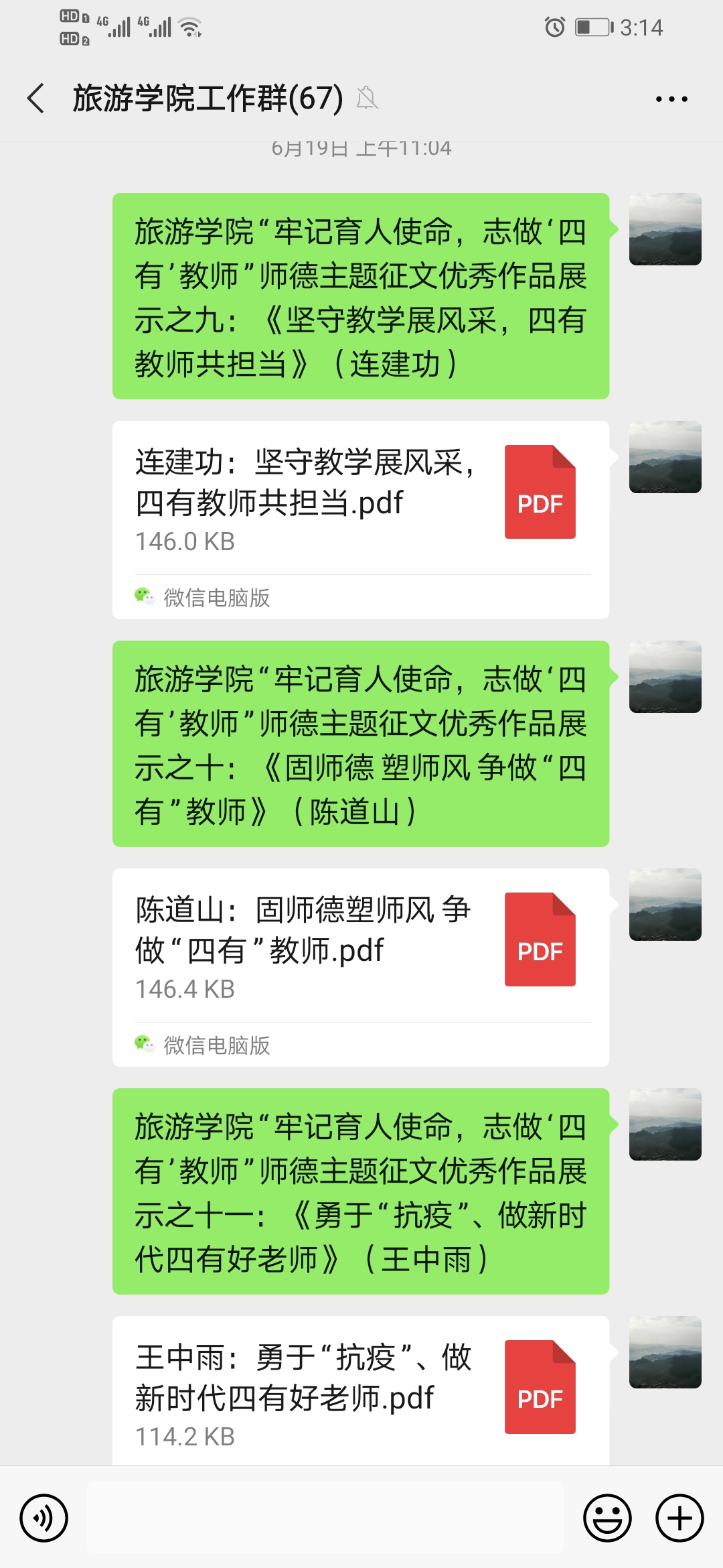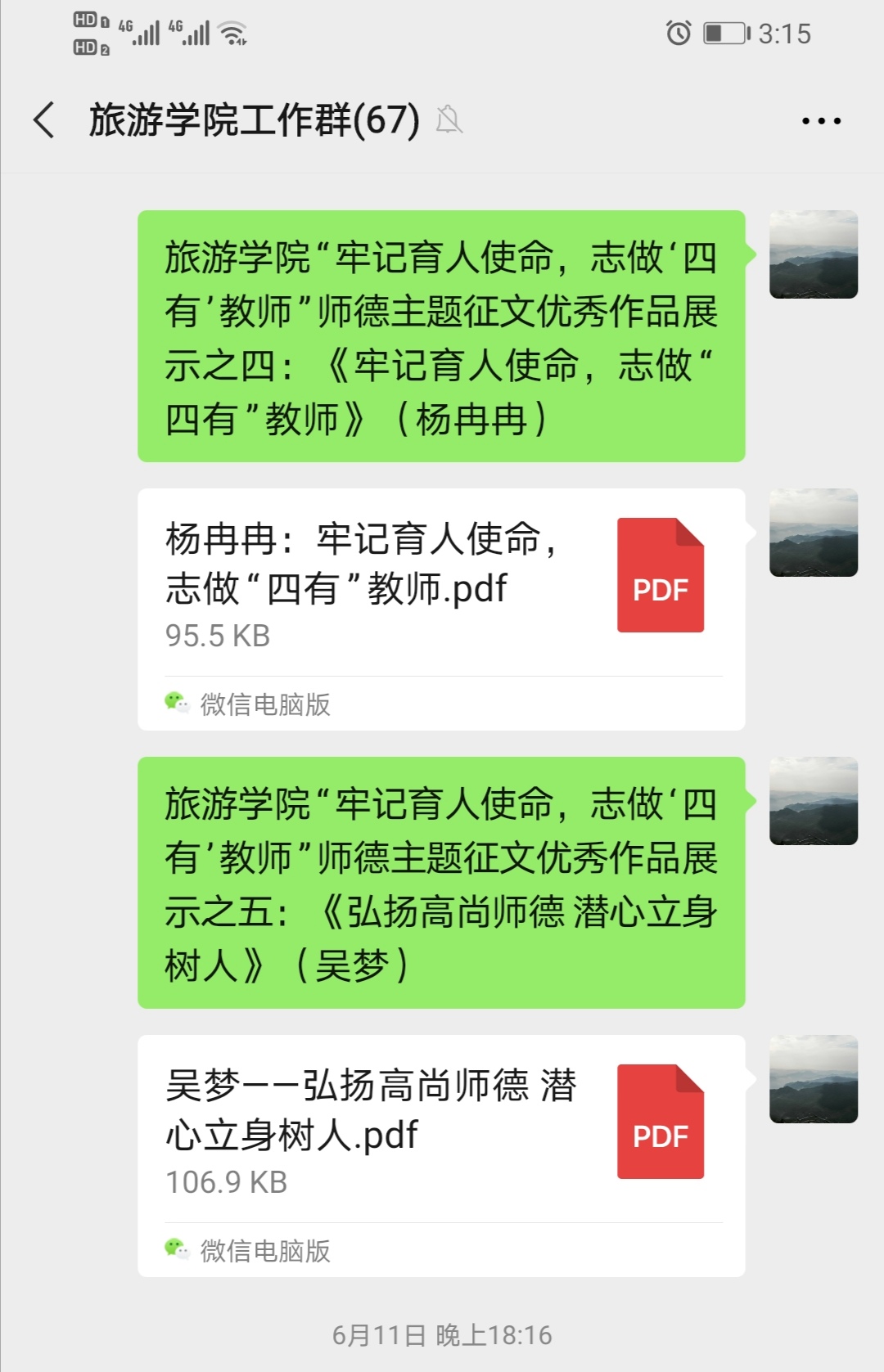 欧冠官网的优秀作品上报学校后,获得了校级一等奖两项,二等奖一项,并且荣获优秀组织奖。学院还将优秀作品在学院教工微信群先后进行了展示,号召广大教职工自觉加强师德师风建设。