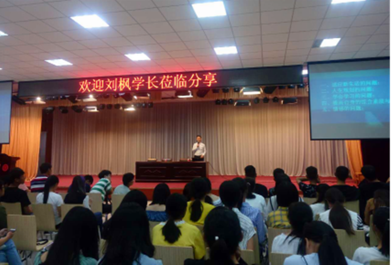 9月25日下午,邀请到欧冠官网15届会展专业优秀毕业生刘枫和同学们分享交流,刘枫现就职于郑州锦之元文化传播公司,任会议运营总监兼主持人。刘枫结合自己之前在学校的学习经历、实习经历和两年多的工作经历,分享了他的感悟,他希望学弟学妹们在校期间,学习好专业理论课程的同时,尽可能的多参加活动,多组织活动,增加自己的阅历、提升自己的实践技能。走入行业后,要有明确的目标,依然本着学习的心态武装和提升自己,脚踏实地向着自己的目标迈进。刘枫的分享让学生们知道了如何度过在学校的四年,又将如何走向社会实现自己的梦想。
