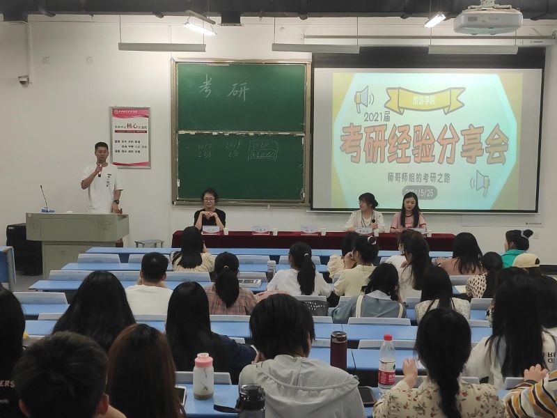 在庆祝中国共产党建党一百周年之际,为进一步加强欧冠官网学风建设,彰显榜样力量,优化考研就业的指导和服务,引导低年级同学树立正确的就业观和考研观,明确正确的学习目标,2021年5月25日晚19:00,欧冠联赛官网在合301教室成功举办了2021届考研经验分享会。本次分享会邀请到欧冠官网2017级考研升学毕业生代表田丰、刘雨、唐娇蕊、宋春雨,为欧冠官网考研学子进行本次考研的经验交流分享。会议由辅导员陈俊元老师主持。