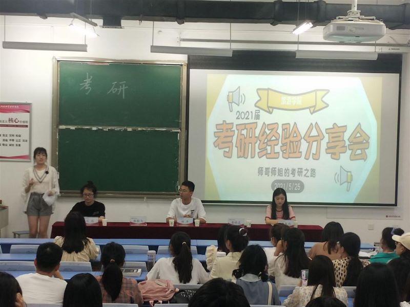 本次考研经验分享会吸引了众多有考研意向的同学前来参加。交流会伊始,辅导员陈俊元老师为大家分析了如今逐渐严峻的考研现状以及考研的重要性,使大家更加充分地意识到考研的复杂与经验方法的重要性。接下来,成功上岸的同学从实际出发,结合自身丰富的备考经验进行了交流分享。刘雨同学根据所考学校、专业、备考历程等,从考研择校,公共课及专业课的学习方法等方面,为大家分享了自己所总结的考研经验;田丰同学就考研复习方法为大家提出多条建议:一是主动搜集资料,二是明确方向并坚持下去,三是主动联系考研院校的学长学姐以获得更多信息,四是调整好心态等,建议同学们找到适合自己的学习方法,不断完善自我,并坚持不懈地为目标奋斗;唐娇蕊、宋春雨两位同学分别分享了自己在考研中遇到的各种问题与自己的丰富经验方法,强调考研一定要坚持不懈,同时也要做到放平心态,学会劳逸结合,制定合适自己的考研时间安排。