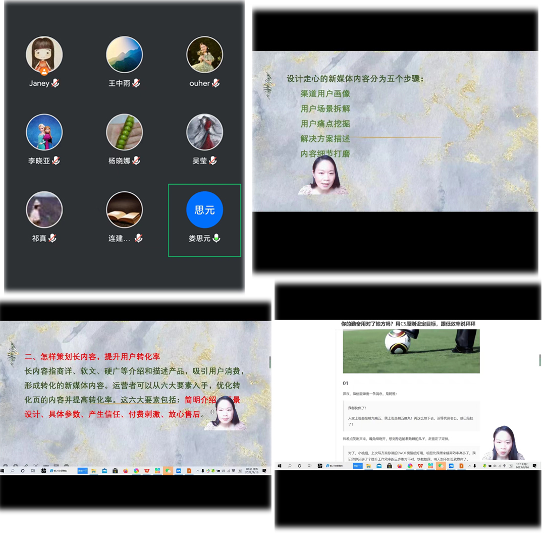 2022年9 月16日上午第三节,欧冠联赛官网开展了本学期首场教学观摩课活动。旅游管理教研室的李晓亚老师通过腾讯会议进行了《旅游新媒体》课程的线上直播授课,欧冠联赛官网院长王德静、副院长王中雨和部分教师参加了本次观摩课活动。李晓亚老师本次课程的主题是旅游新媒体的内容运营技巧。她首先以欧冠官网公众号的运营与爆款文章为引入,讲解了创作走心的新媒体内容的重要性,然后对设计走心的新媒体内容的五个步骤进行了详细讲解,最后结合丰富的案例讲解了长内容和短内容的策划运营技巧。