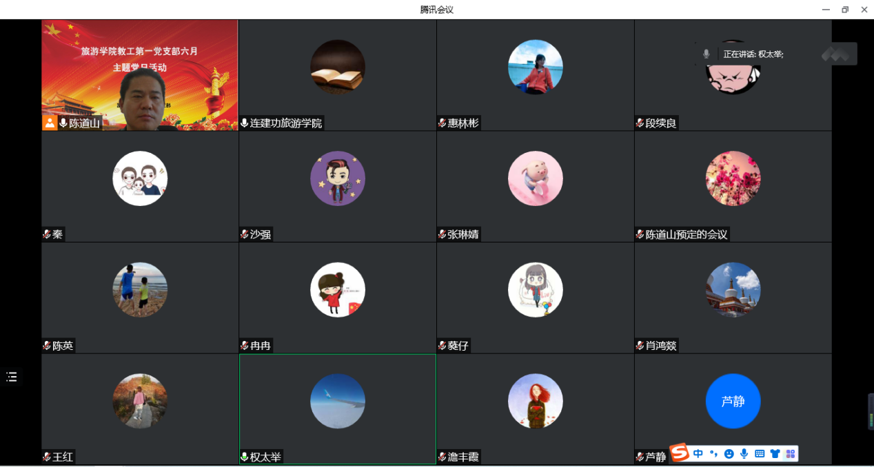 6月16下午,旅游学院教工第一党支部利用腾讯会议开展了主题党日线上学习研讨活动,会议由支部书记陈道山主持支部全体党员参加