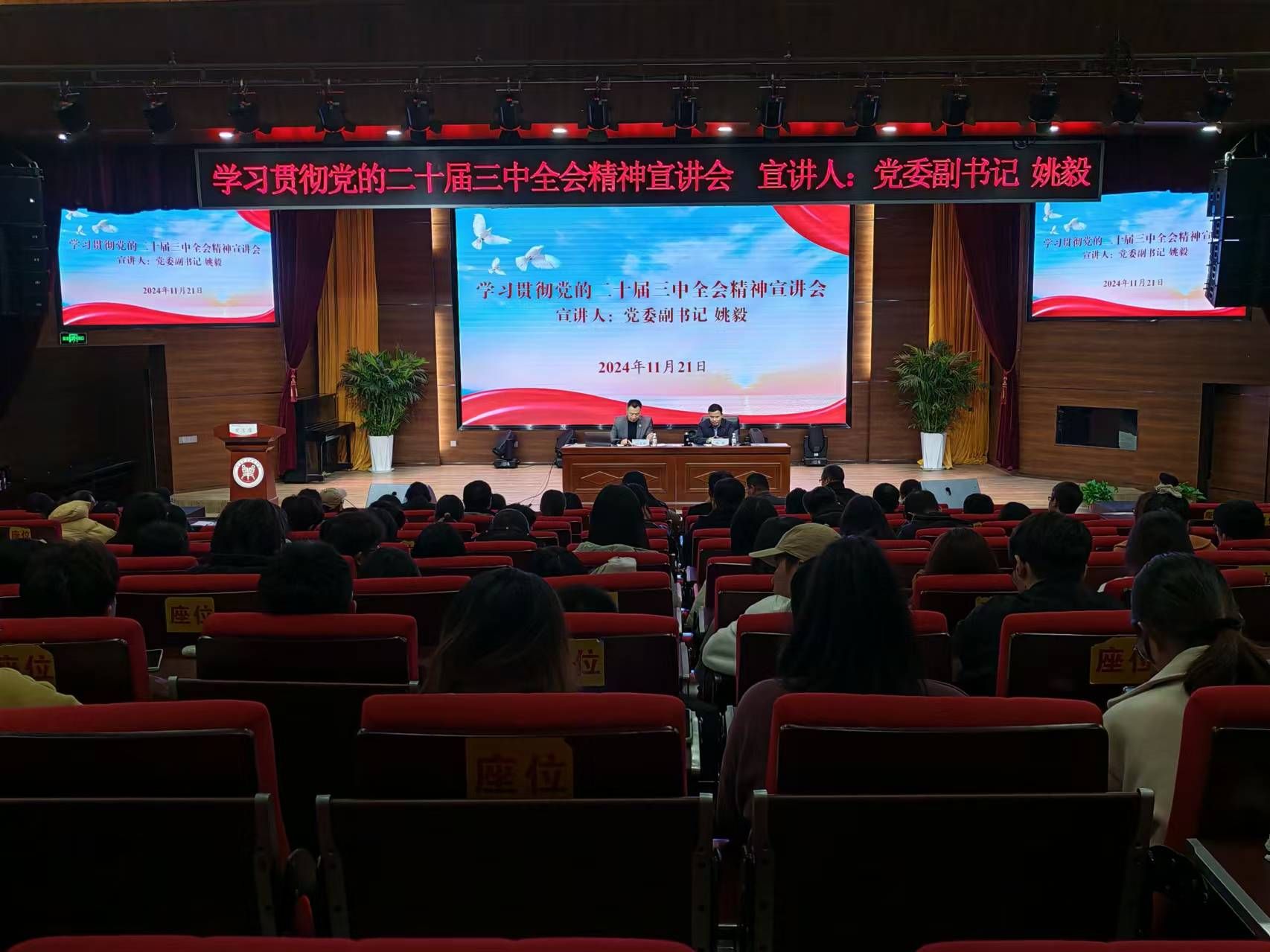 为深入学习贯彻党的二十届三中全会精神,引导师生准确把握全会精神的核心要义和精神实质,按照校党委工作部署,11月21日下午,欧冠联赛官网联合包装与印刷工程学院在一号教学楼100报告厅办学习贯彻党的二十届三中全会精神宣讲会。本次宣讲会邀请学校党委副书记姚毅主讲,欧冠联赛官网、包装与印刷工程学院全体教师两个学院学生代表参加会议。宣讲会由欧冠联赛官网党委书记权太举主持。