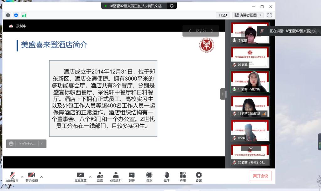 欧冠联赛官网2022届酒店管理本科专业毕业论文答辩工作顺利完成