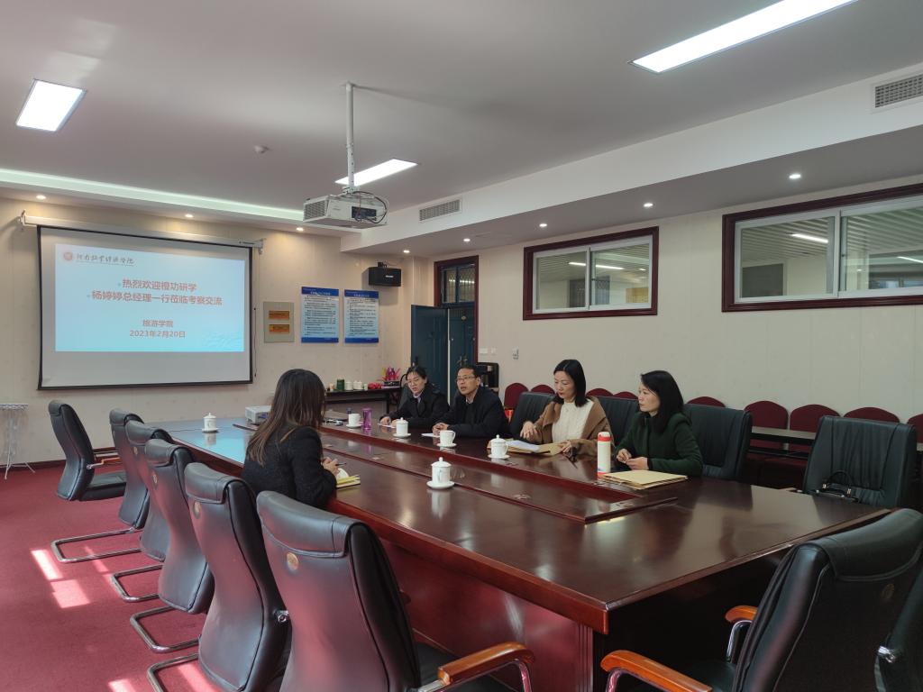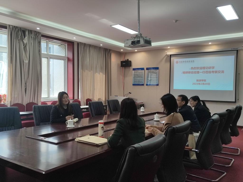 2023年220日,河南橙功研学旅行服务有限公司总经理杨婷婷女士来欧冠官网洽谈校企合作事宜。欧冠联赛官网副院长王中雨、旅游管理教研室主任甄莎博士和教师代表参加了座谈交流,座谈会由王中雨院长主持。
