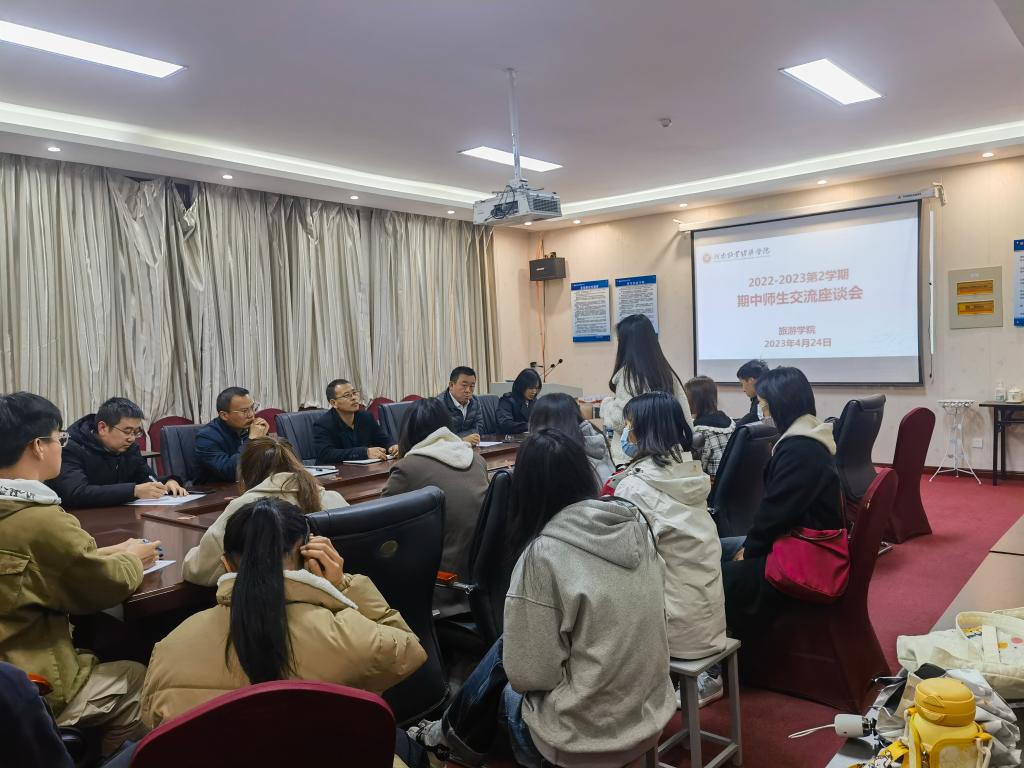 2023年4月24日13点,欧冠联赛官网在C423会议室召开2022-2023学年第2学期期中教学专题师生座谈会,王中雨副院长、教学办主任、各教研室主任及各专业班级学生代表参加了会议。