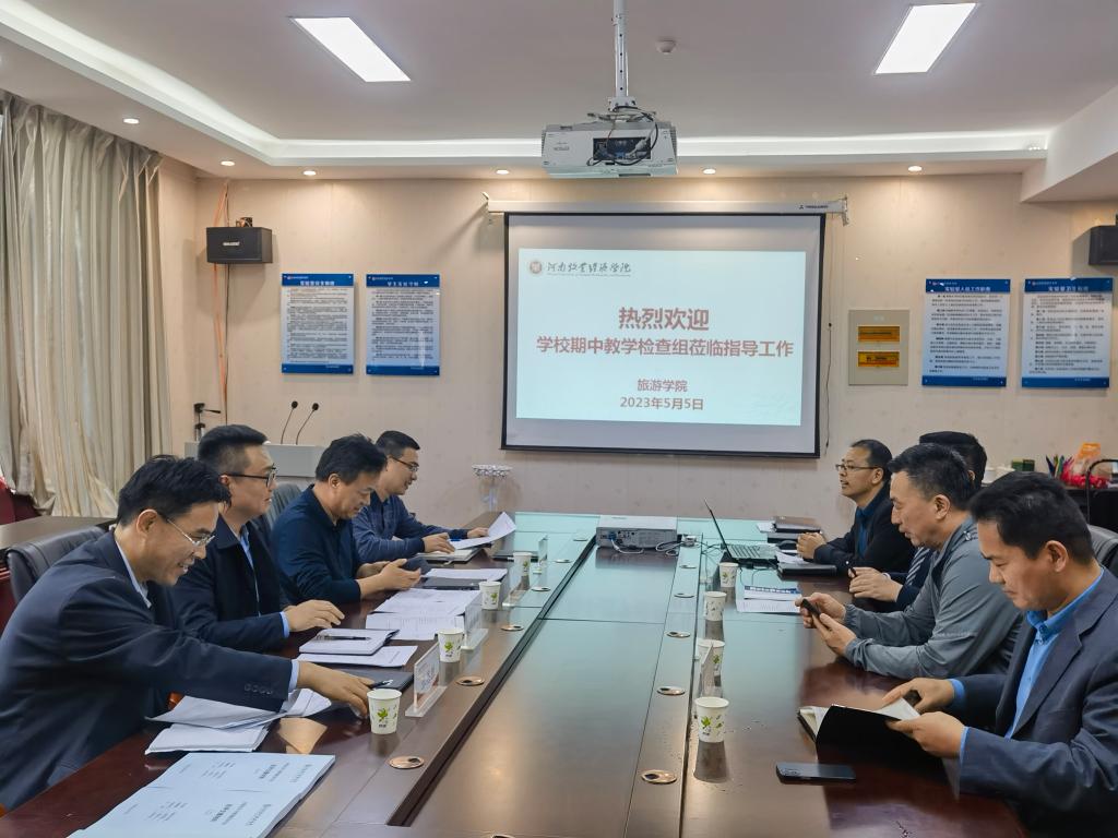 首先,王德静院长代表欧冠联赛官网对校检查组致以最热烈的欢迎,并感谢学校对学院工作给予的充分关注和重视。王鑫磊处长代表检查组对本次工作程序和要求进行了讲话。随后,王中雨副院长从学院近期教学工作组织管理情况、课程教学工作开展情况、各专业实践教学情况、学院开展访企拓岗工作情况、本科毕业论文中期检查情况等九个方面进行了汇报。检查组听取汇报并检查了相关材料,对试卷批改、论文进度等方面进行了重点反馈与交流。会上,旅游管理专业、会展经济与管理专业及酒店管理专业的三个本科专业教研室主任还进行了专业自评汇报。