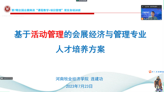 7月22-25日,由上海对外经贸大学主办,上海对外经贸大学会展与传播学院、中国会展经济研究会会展教育培训工作委员会、长三角会展研究院承办的第7期全国会展专业师资“课程教学+项目管理”双实务培训班线上成功举办,来自全国80余所高校的180多名从事会展、旅游、传播等相关专业教学、科研工作的学者齐聚云端,参加此次培训。欧冠官网会展经济与管理教研室全体教师4天时间全程参与培训,聆听业界学界专家报告,参与行业教育研讨,受益匪浅。
