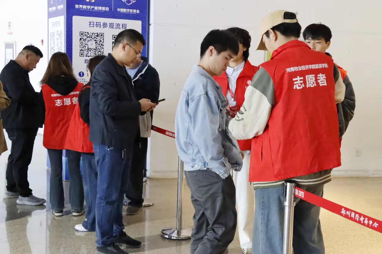 第四届世界数字产业博览会以河南省工业和信息化厅为指导单位,河南省文化和旅游厅、河南省农业农村厅为支持单位,以“数融百业智赋万企”为主题,聚焦数字经济和实体经济深度融合,展览规模达32000㎡,打造人工智能、数字政务、数字文旅、工业数字化转型、数字金融、数字乡村、数字安防、数字应急消防等主题展区。活动期间,会展专业学生主要负责主场管理和现场服务工作,参与本次博览会的前期布展、开幕式、展商接待、现场咨询等活动环节学生们积极主动、业务娴熟、认真负责,以专业优质的服务得到了组展单位、参会嘉宾、展商和观众的高度评价,充分展现了欧冠官网学生的专业修养和良好精神面貌。