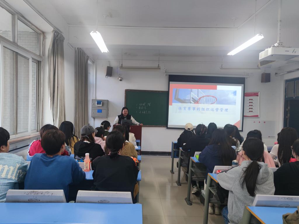观摩课的授课内容是“体育赛事的组织运营管理”。徐老师以刚刚结束的2024郑开国际马拉松为案例导入,引出教学内容,通过理论讲授、互动提问、课程讨论、观点分享等授课环节,以学生为中心、引导学生主动思考,发现问题、分析问题、解决问题。授课内容环环相扣、循序渐进,课堂互动氛围良好。