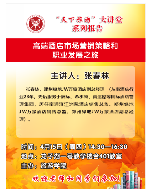 上一条:欧冠联赛官网“天下旅游大讲堂”系列报告之 ——高端酒店市场营销策略和职业发展之旅