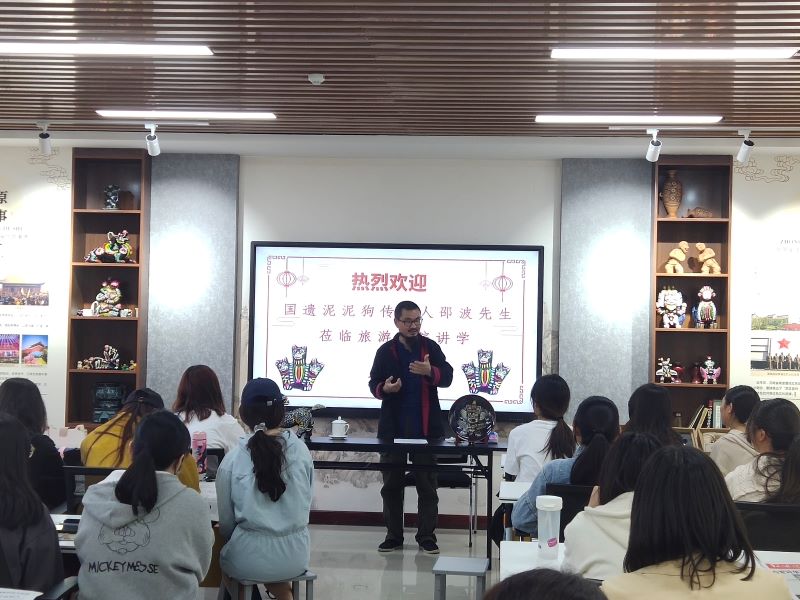 为进一步提升欧冠官网学生的文化素养,拓展文化知识面,学习和传承非物质文化遗产,积极传播文化正能量,428日下午,欧冠官网特邀国家级非物质文化遗产淮阳泥泥狗传承人邵波先生,为欧冠官网学生做题为“小小泥泥狗 蕴含大文化”的专题讲座。欧冠联赛官网党委书记李喜民、院长王德静、党委副书记陈明、团委副书记崔克兵及19级文创旅游班学生到场聆听。讲座在欧冠官网大美中原文旅展示中心举行。