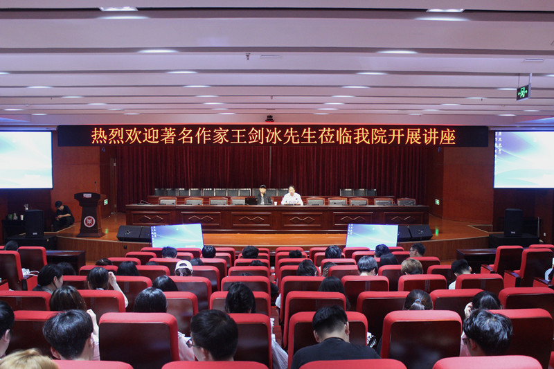 报告会临近结束时,同学们纷纷举手要求与王剑冰先生交流,话题涉及文化、美学、写作等。王剑冰先生愉快的回答“如何准确地表达自己的审美”“如何推动情节的发展”等大家的提问,并对同学们写作、审美中的疑惑给予具体指导。