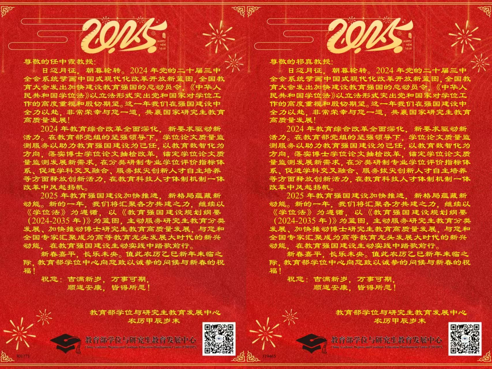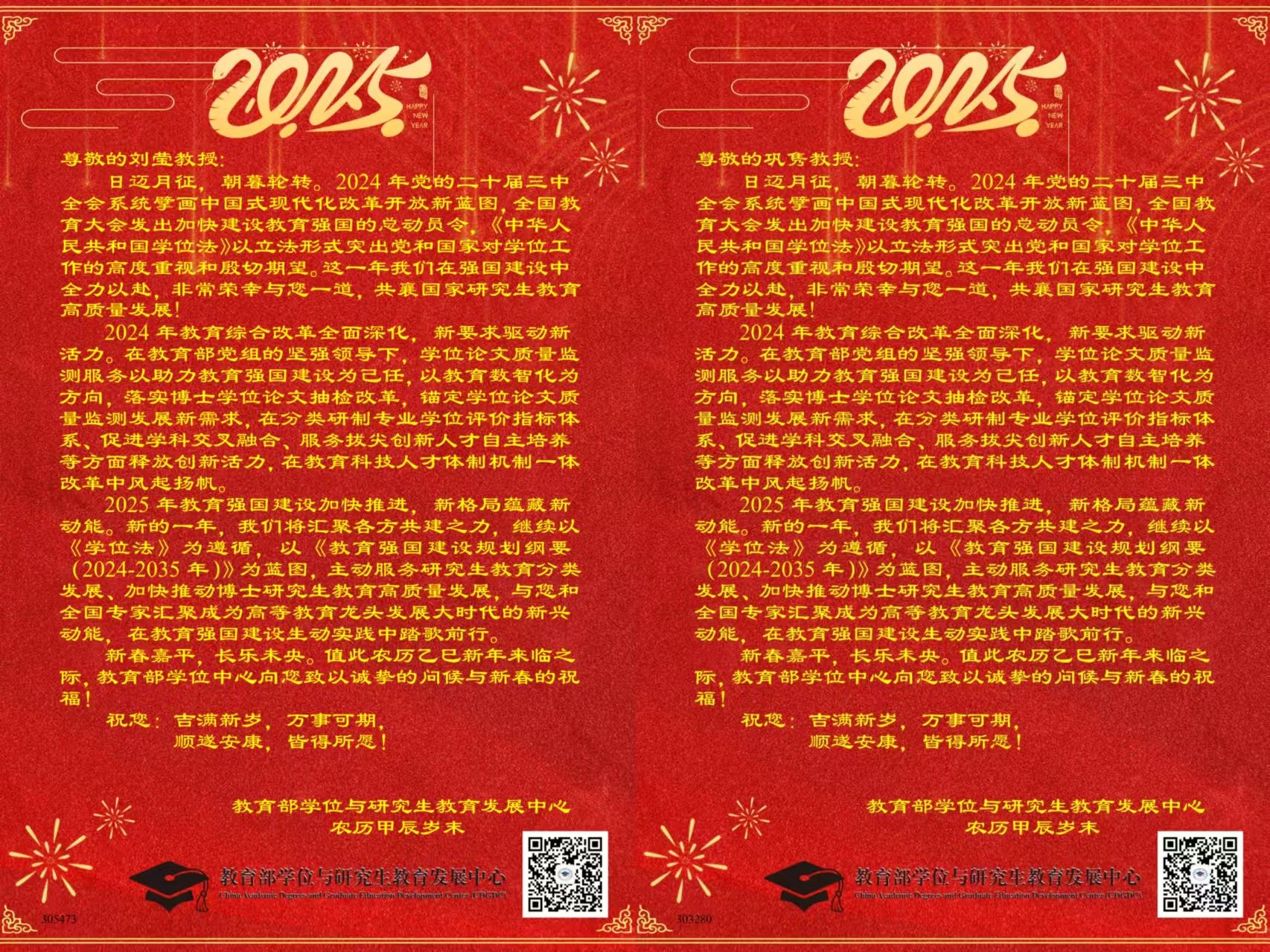 欧冠联赛官网多名教师收到教育部学位和研究生教育发展中心发来的新年贺信