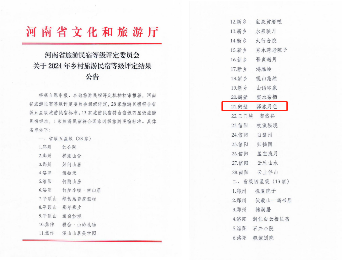 驿旅月色民宿集群在张众教授的指导下,积极参与河南省文旅厅组织的民宿评定工作。1211日,河南省文化和旅游厅公布2024年乡村旅游民宿等级评定结果,“驿旅月色”获评省级五星级乡村旅游民宿。通过评定,不仅提升了自身的品牌影响力,也为河南省乡村文旅产业树立新标杆。评定过程中,民宿集群在环境、服务、文化内涵等方面均得到了高度评价,充分说明了科技特派员对乡村文旅产业高质量发展的推动作用。