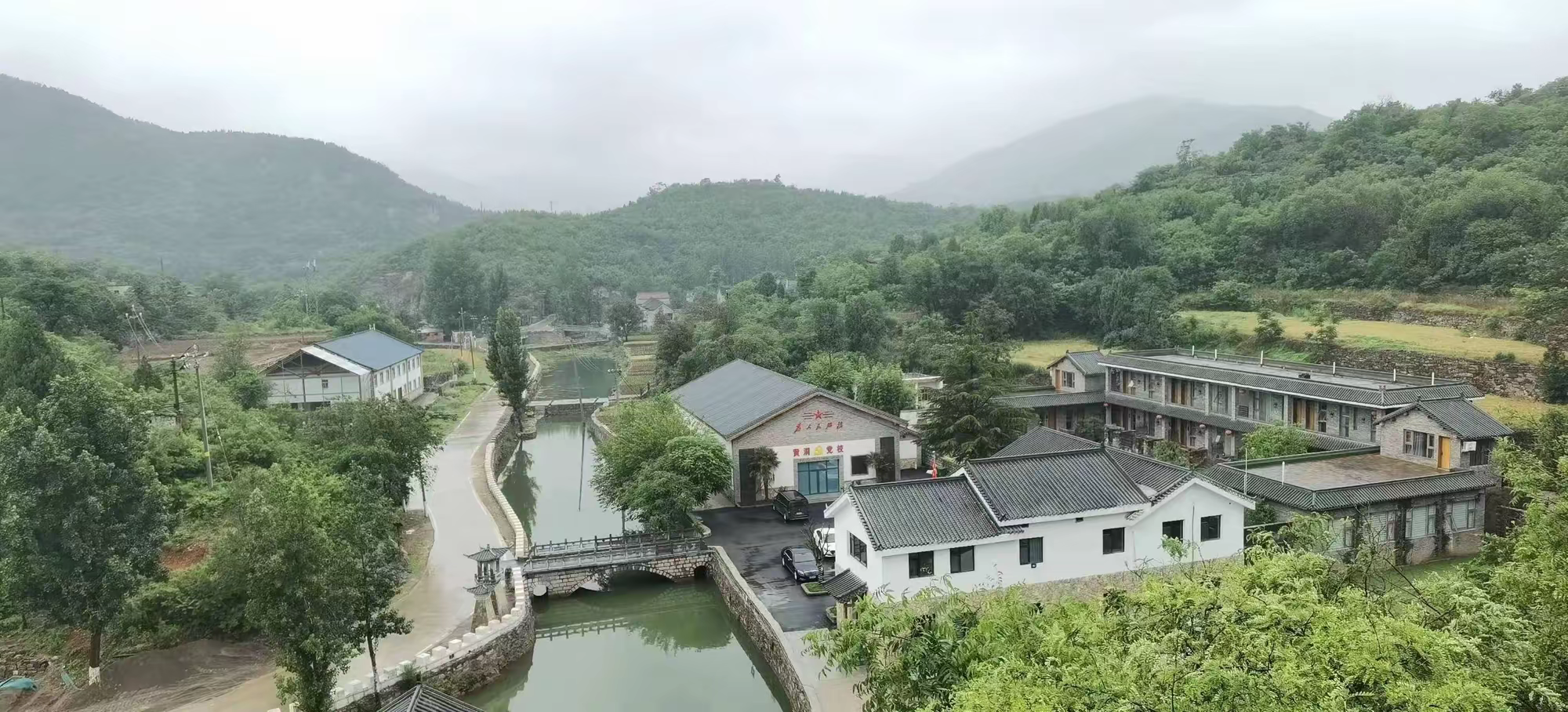 驿旅月色民宿集群坐落于淇县黄洞乡鲍庄村,太行山脉的怀抱之中,西邻林州,南接卫辉。该项目由民宿区、餐饮区和研学区三大部分构成,配备包括水上餐厅、多媒体会议室、咖啡屋、文创小铺、农产品展厅、非遗研学广场、露营基地等在内的多样化配套设施,成为豫北地区知名的田园山居和生态宜居休闲度假胜地。