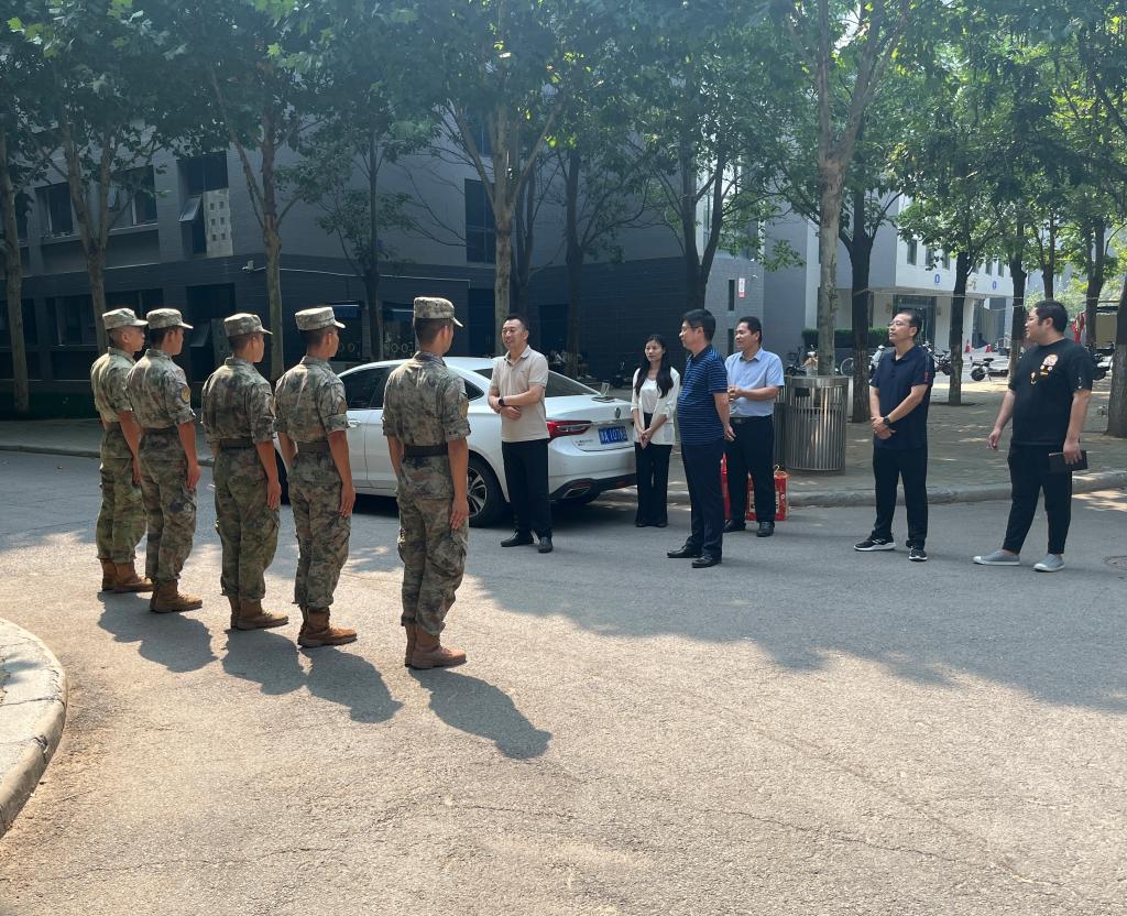 院领导一行观摩了学生的训练情况,并与教官亲切交流,询问了军训的进度与安排,了解了训练过程中学生的思想动态和身体状况。学院领导对教官的辛勤付出表示感谢,对参训学生斗志昂扬、不畏艰苦的精神面貌给予充分肯定,并鼓励学生要通过军训激发爱国主义热情,学习军人坚忍不拔的毅力和迎难而上的拼搏精神,用实际行动展现新时代青年大学生应有的精神风貌;希望参训学生继续发扬不怕苦、不怕累的精神,展现严谨认真的训练作风,并将艰苦军训中学会的严守纪律、吃苦耐劳的精神,带到今后的学习生活当中。