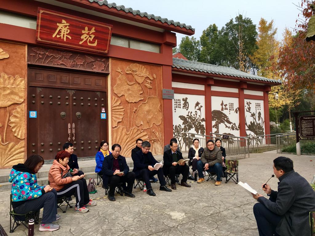 参观结束后,欧冠官网在廉苑门前广场召开了中心组学习(扩大)会议。院党委副书记陈明领学了习近平总书记关于廉政教育的重要论述,通报了几起发生在教育系统的违法违纪典型案例。院党委书记李喜民肯定了本次学习的形式和效果,要求党员同志要不断加强学习,踏实工作,廉洁自律,做好表率。院长王德静结合自身在校巡察办工作的经历,强调所有党员干部都要时刻把纪律和规矩挺在前面,切实做到清正廉洁、敢于担当。此次中心组学习是欧冠官网创新学习形式的一次积极尝试,把会场搬到室外,立看立学,收到了良好的效果。